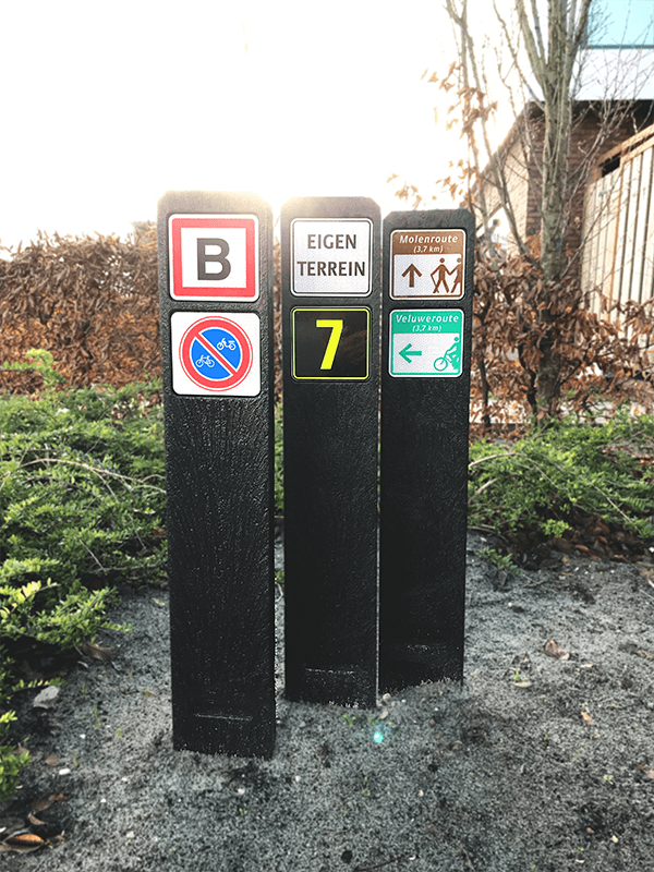 Poteau en plastique recyclé, encrage au sol compris.