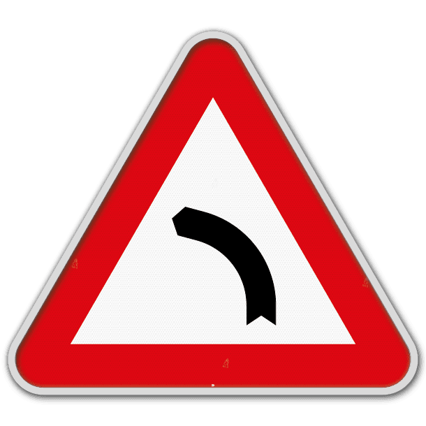 A1a : Ce panneau de danger indique qu'un virage à gauche dangereux est proche. L'usager de la route doit adapter sa vitesse.