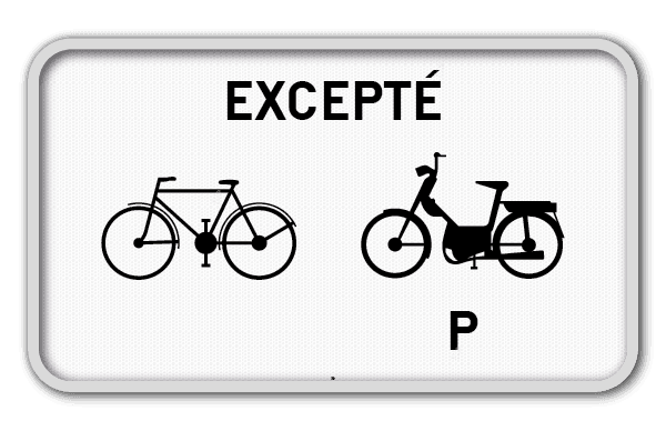 M11 : Ce panneau inférieur indique que le panneau de signalisation ci-dessus ne s'applique pas aux cyclistes et aux cyclomoteurs.