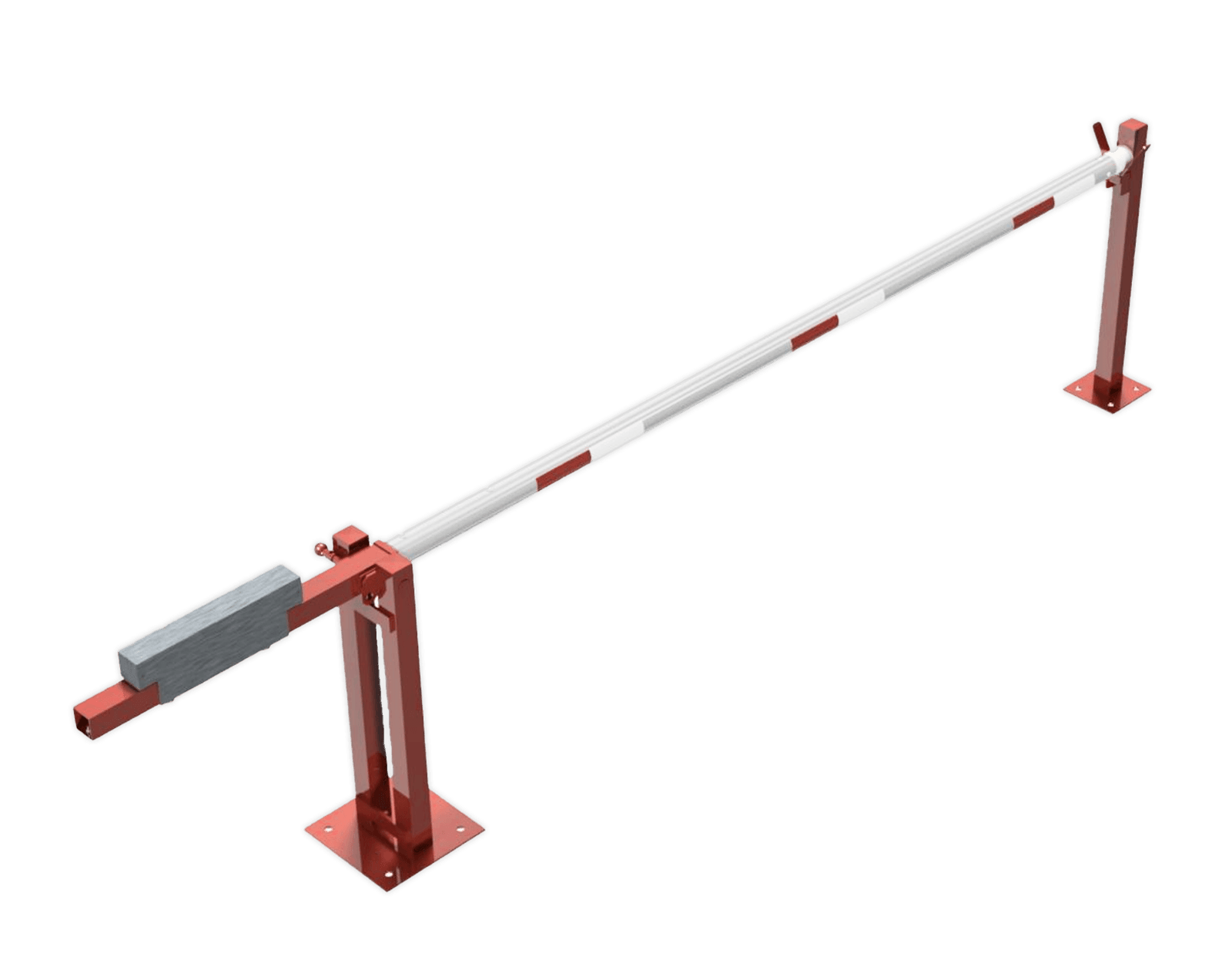 Barrière levante en acier galvanisé et revêtue (RAL3020) avec contrepoids, poteau de support ou pendule .