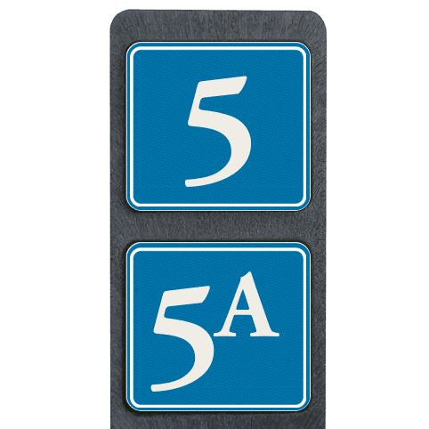 Poteau de numéro de maison avec 2 panneaux réfléchissants 119x109mm