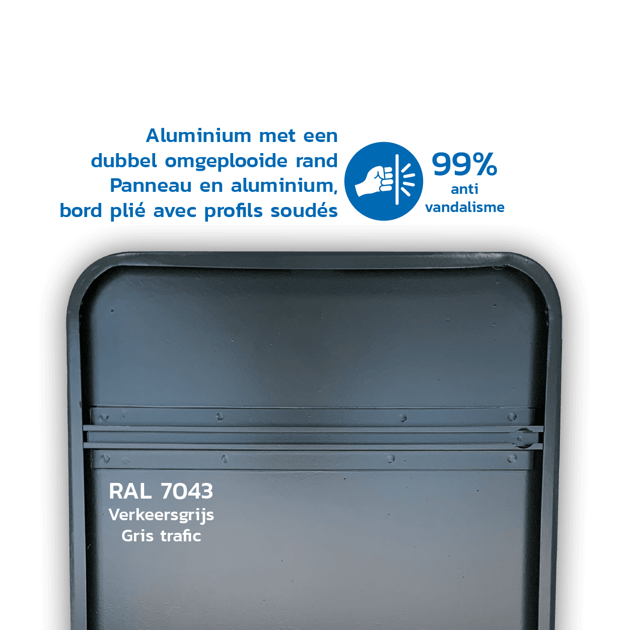 Panneau de signalisation officiel avec bord plié et profils soudés.