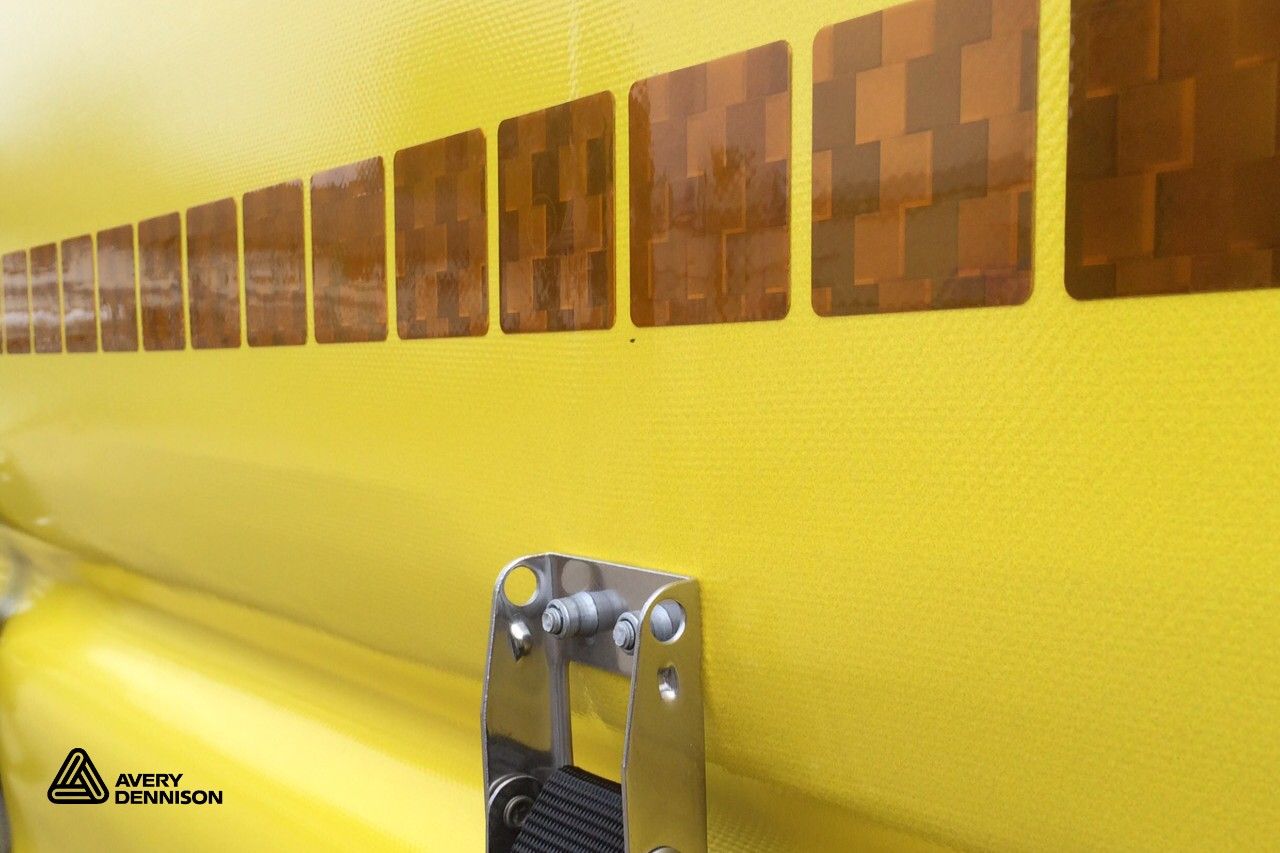 Marquage de contour (bande de conspicuité) sur un rouleau (rouge) Avery Dennison V-6790B. A utiliser sur une bâche, par exemple. Convient aux surfaces souples.